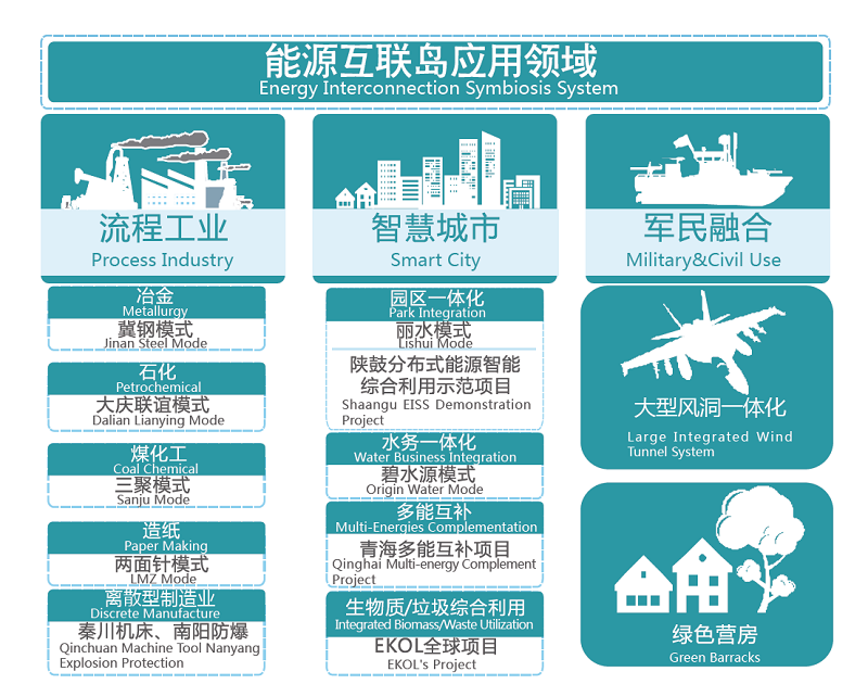 分布式能源智能综合利用项目——能源互联岛方案,指分布在用户端的能源综合利用系统,基于区域能源物料的供给禀赋,在满足区域能源合理需求的前提下,采用互联网思维,因地制宜、量体裁衣,综合利用供给侧能源条件及资源条件,通过技术、商业模式创新,提供水、冷、暖、电、气、固废处理(生活垃圾、餐厨垃圾及污泥等)等能源(量)全生命周期一体化综合定制化解决方案,并利用智能管理和互联网技术建立智慧管理系统,从而提升资源循环和自我供给及处理能力,实现土地集约、设备集约、功能集约及运营集约。
